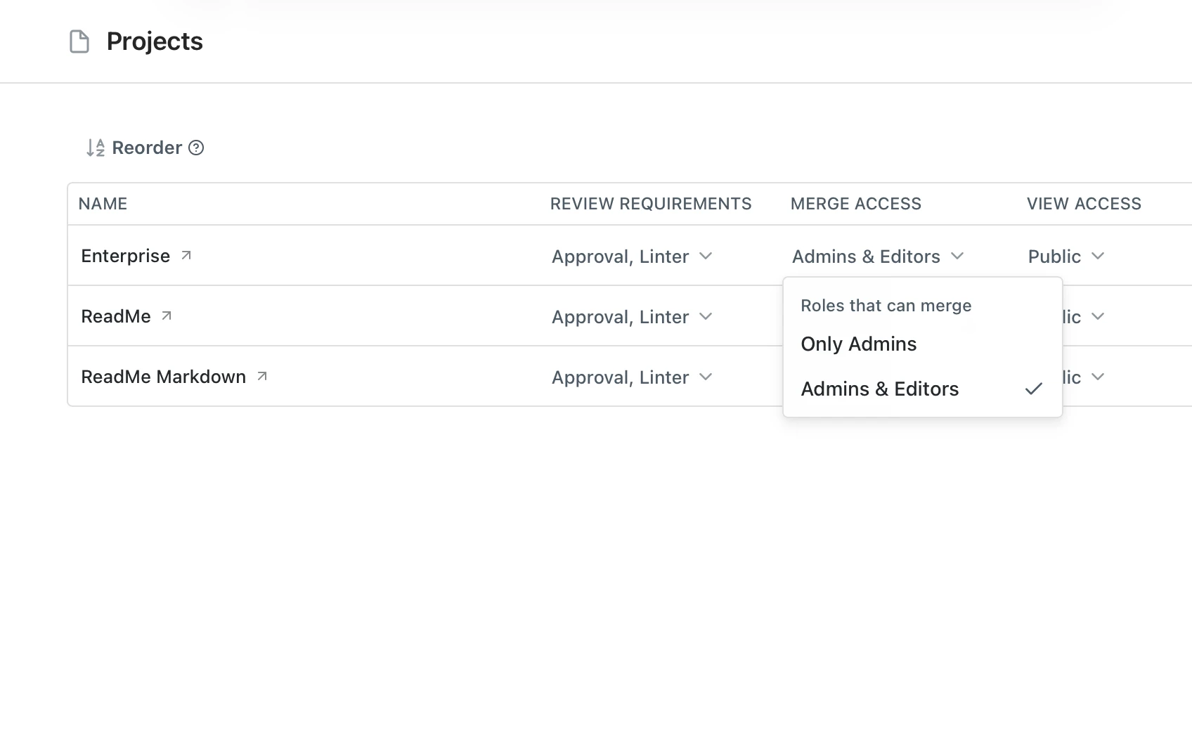 - Teammate Approval: Only allow merging if another teammate has approved. Group Admins can decide if an Editor approval is sufficient, or if an Admin will need to approve explicitly.