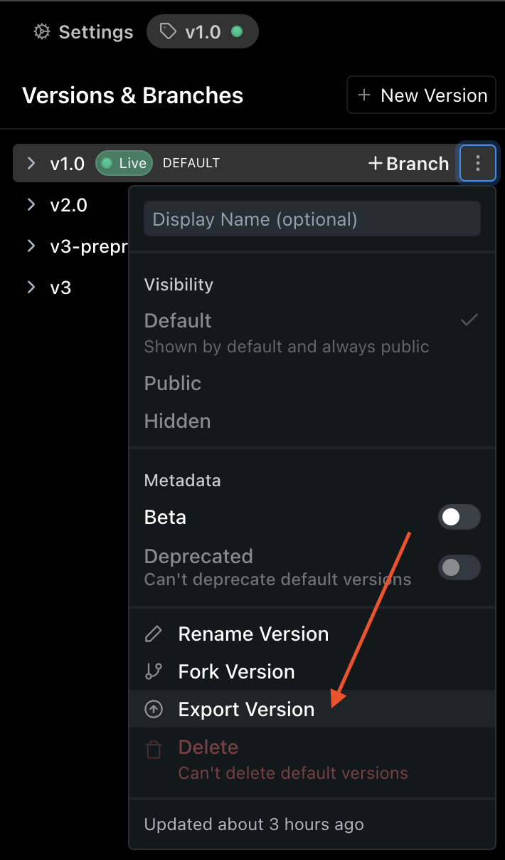 - Click the the ⋮ icon then click "Export Version"