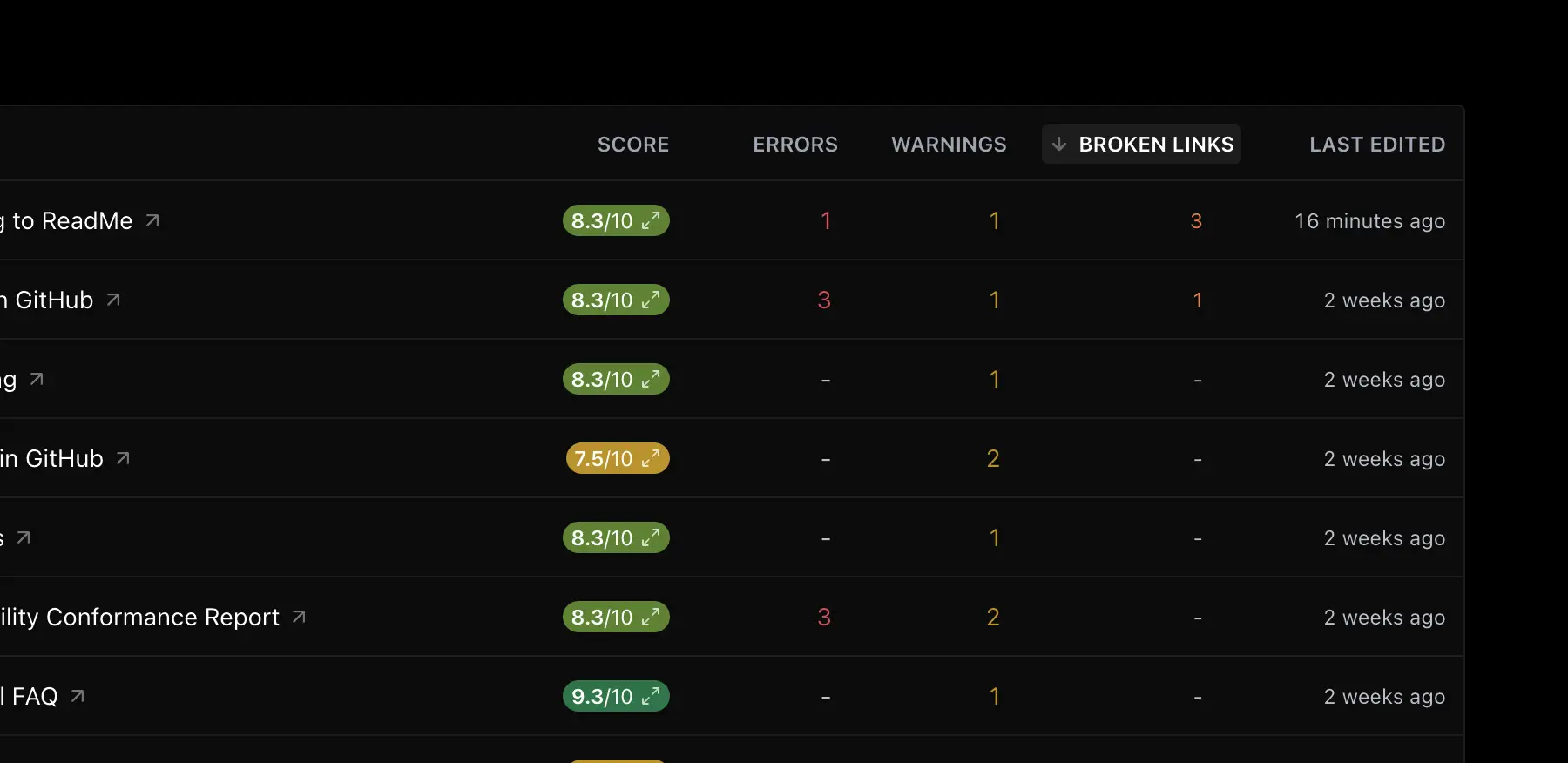 Running a Docs Audit will now automatically check your documentation for broken links, ensuring your users never hit a dead end.