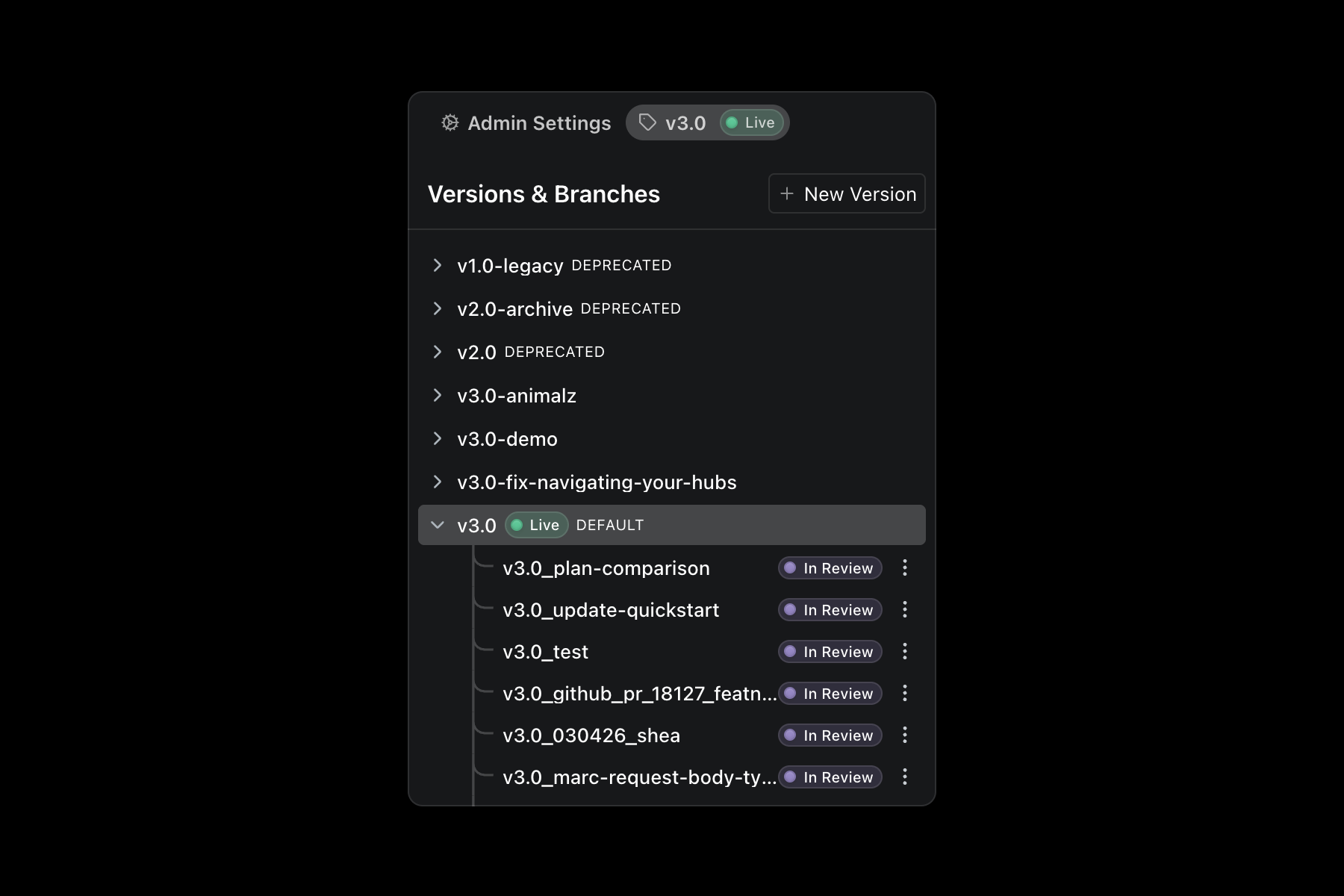 - Navigate to the versions and branches menu. Once there, you can create new branches from a version.