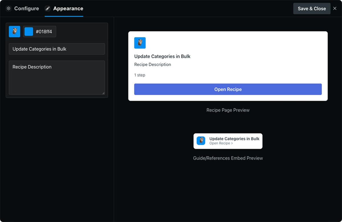 Switch to the Appearance tab to make your Recipe uniquely yours:
