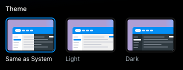 You can choose between 3 theme options: Same as System, Light, and Dark. You’ll be able to preview the layout before saving any changes.