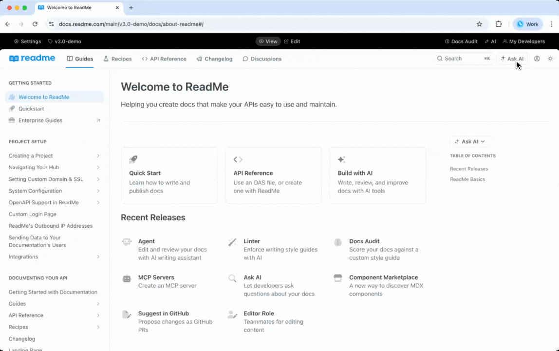 ReadMe Refactored represents the future of ReadMe, and includes improvements to almost every aspect of the product, plus powerful collaboration and AI features that are exclusive to this new experience!